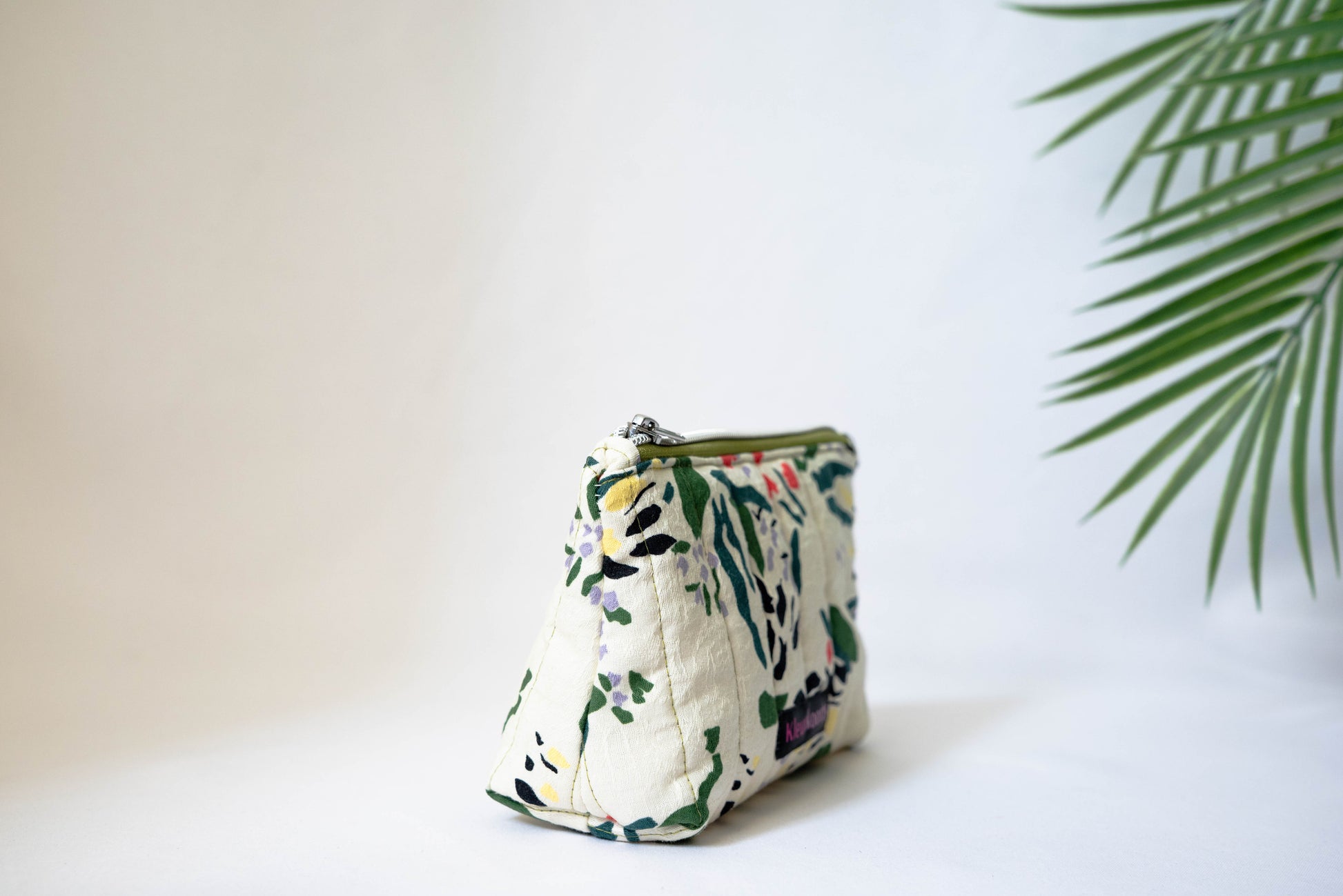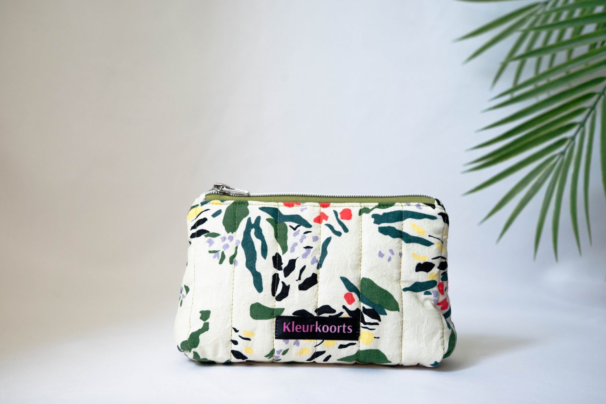 Verwen jezelf met deze unieke handgemaakte etui! De buitenstof heeft een vrolijke print en is ook gequilt, wat ervoor zorgt dat de tas stevig is en goed zijn vorm behoudt. Dankzij het handige formaat is het veelzijdig in gebruik: perfect als pennenetui, maar ook ideaal om mee te nemen in je tas als compacte make-up bag. Een praktische, stijlvolle en kleurrijke toevoeging voor onderweg of voor in je schooltas.